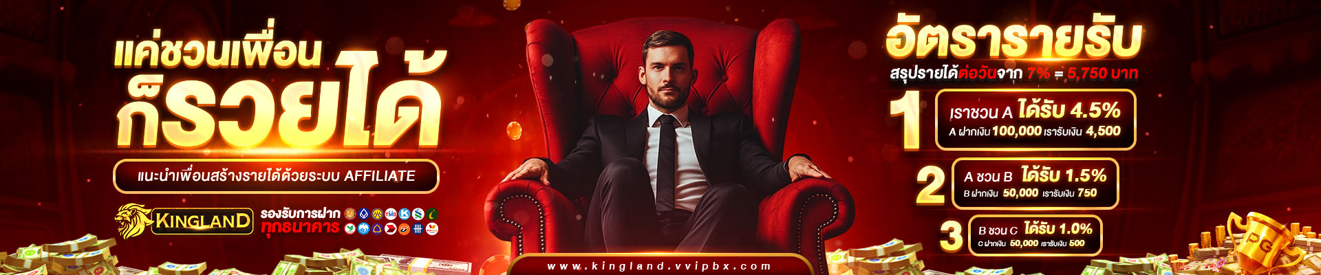 สำหรับสมาชิกใหม่ที่เพิ่งเริ่มต้น Kingland มีโปรโมชั่นสุดพิเศษที่จะทำให้คุณประทับใจตั้งแต่ครั้งแรก เริ่มต้นด้วยโบนัสต้อนรับสมาชิกใหม่สูงถึง 100% พร้อมเครดิตฟรีที่สามารถใช้เล่นได้ทุกเกม นอกจากนี้ยังมีโปรโมชั่นคืนยอดเสียรายวัน และโบนัสแนะนำเพื่อนที่จะช่วยเพิ่มโอกาสในการทำกำไรของคุณ